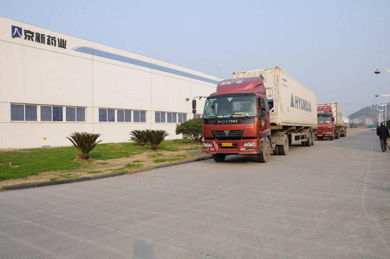 3月2日二輛20尺40尺的冷柜集裝箱車停放在藥品制造公司倉(cāng)庫(kù)門口,師傅們正忙著裝車……2011年度首批出口歐盟的外貿(mào)制劑產(chǎn)品即將整裝待發(fā),這對(duì)于浙江京新藥業(yè)股份有限公司來說是一個(gè)多么不平常的日子呀!
