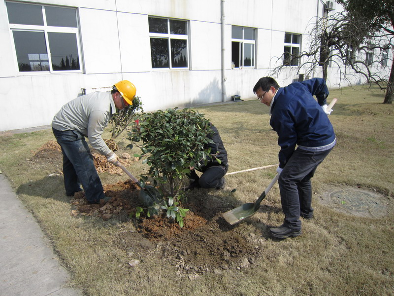早上十點,大家就準時地聚集在指定地點,先由專業(yè)人員對植樹的要求和方法進行了解說,之后大家熱情高漲,就連平時看著柔弱的女同胞們也開始賣力地勞動。大家分工合作,有的扶樹苗、有的鏟土……熱鬧的場面溫馨而快樂。一眨眼的功夫,在大家的辛勤勞動下,樹苗便“亭亭玉立”在沃土上。雖然大家腳底全是泥土,但眼前這一片新生的綠意讓大家滿心歡喜。