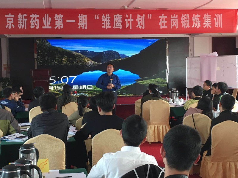 4月13-15日,京新藥業(yè)第一期“雛鷹計劃”在崗鍛煉集訓在新昌鶴群大酒店天姥廳舉行,人力資源總監(jiān)周曉峰、研究院副院長唐飛宇應邀出席。