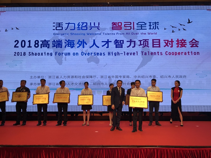 6月12日上午9時,“活力紹興?智引全球”2018高端海外人才智力項目對接會在紹興隆重開幕,會上公司獲得浙江省外國專家工作站授牌。