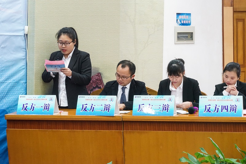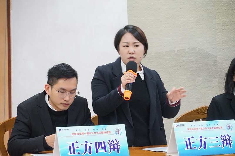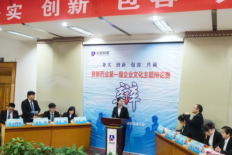 12月15日,京新藥業(yè)第一屆企業(yè)文化主題辯論賽半決賽如期舉行,經(jīng)過初賽、加賽的激烈角逐,四強隊伍脫穎而出,為我們呈現(xiàn)了一次更為精彩的思想碰撞。比賽特邀新昌中學(xué)原語文教學(xué)組組長、資深語文教育專家潘國仁老師、新昌中學(xué)原語文教學(xué)組組長、資深語文語言專家俞雅麗老師、新昌中學(xué)政教處副主任、政治老師王玉瑛、新昌中學(xué)語文老師梁珂菡及求旭麗、新昌中學(xué)政治老師張鳳珍、公司黨委副書記孔慶豐等領(lǐng)導(dǎo)出席并擔任評委,近200余員工現(xiàn)場觀戰(zhàn)。