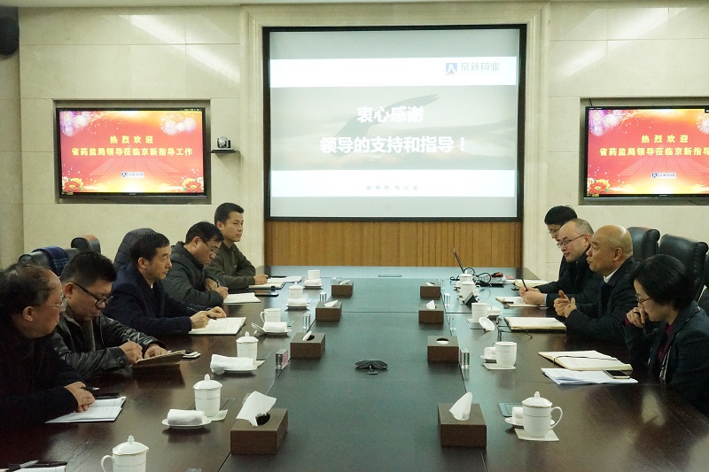 1月3日,浙江省藥品監(jiān)督管理局副局長邵元昌、省藥品認證檢查中心主任王衛(wèi)東、省藥監(jiān)局藥品安全監(jiān)管處副處長何金華、省藥監(jiān)局藥品注冊處副處長周耘等領導一行蒞臨京新,就公司一致性評價工作進行現(xiàn)場調(diào)研,紹興市市場監(jiān)管局副局長周翔、紹興市市場監(jiān)管局安監(jiān)處處長鄧俊斌、副縣長胡玲萍等領導陪同調(diào)研。公司董事長呂鋼、總經(jīng)理王能能、研究院院長侯建熱情接待了邵局長一行。