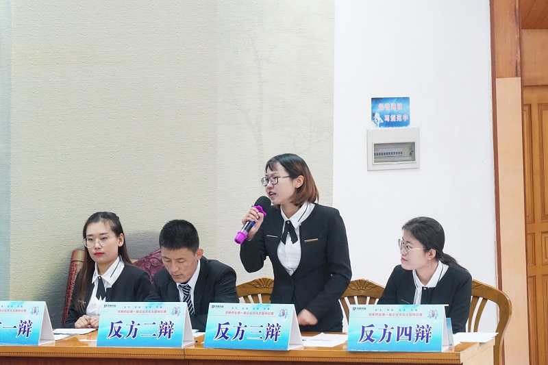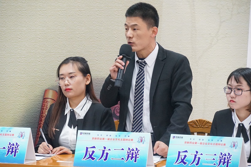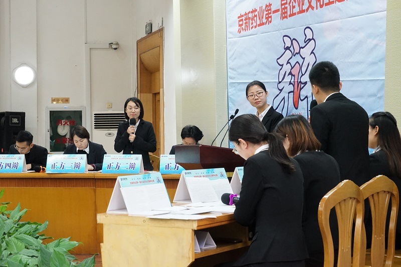 12月15日,京新藥業(yè)第一屆企業(yè)文化主題辯論賽半決賽如期舉行,經(jīng)過(guò)初賽、加賽的激烈角逐,四強(qiáng)隊(duì)伍脫穎而出,為我們呈現(xiàn)了一次更為精彩的思想碰撞。比賽特邀新昌中學(xué)原語(yǔ)文教學(xué)組組長(zhǎng)、資深語(yǔ)文教育專(zhuān)家潘國(guó)仁老師、新昌中學(xué)原語(yǔ)文教學(xué)組組長(zhǎng)、資深語(yǔ)文語(yǔ)言專(zhuān)家俞雅麗老師、新昌中學(xué)政教處副主任、政治老師王玉瑛、新昌中學(xué)語(yǔ)文老師梁珂菡及求旭麗、新昌中學(xué)政治老師張鳳珍、公司黨委副書(shū)記孔慶豐等領(lǐng)導(dǎo)出席并擔(dān)任評(píng)委,近200余員工現(xiàn)場(chǎng)觀(guān)戰(zhàn)。
