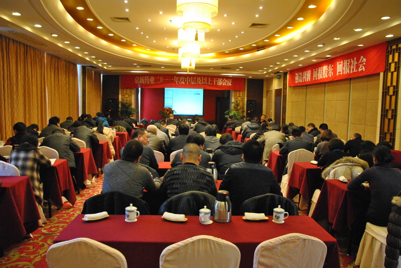 會(huì)上,藥品銷售公司、藥品制造公司、內(nèi)蒙京新、上虞京新、廣豐京新、原料藥銷售公司六個(gè)分子公司總經(jīng)理和研發(fā)中心主任向大會(huì)作2011年度工作述職和2012年經(jīng)營(yíng)思路和工作計(jì)劃匯報(bào)。隨后,公司總經(jīng)理呂鋼與各分子公司總經(jīng)理分別簽訂了年度責(zé)任狀。