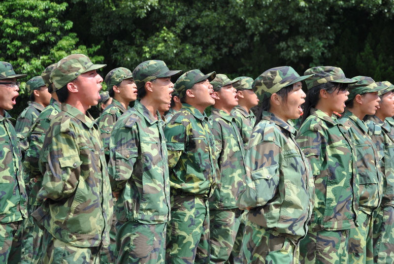 雖然還只是上午8:30,但炙熱的太陽曬在身上已是火辣辣的,只要站在太陽底下就會大汗淋漓了。參加匯報表演的29名大學生,稚嫩的肌膚已經(jīng)被曬成了紫銅色,綠色的迷彩服早已經(jīng)被汗水浸濕,但每個人臉上卻洋溢著堅強和自信。響徹云霄的嘹亮軍歌,秩序井然的內(nèi)務整理,訓練有素的打背包,整齊劃一的隊列訓練,鏗鏘有力的擒擊拳,無一不展現(xiàn)出12天軍訓的累累戰(zhàn)果,這也證明了29名新大學生經(jīng)受住了從學校到企業(yè)的第一次考驗,向企業(yè)交上了一份滿意的答卷。
