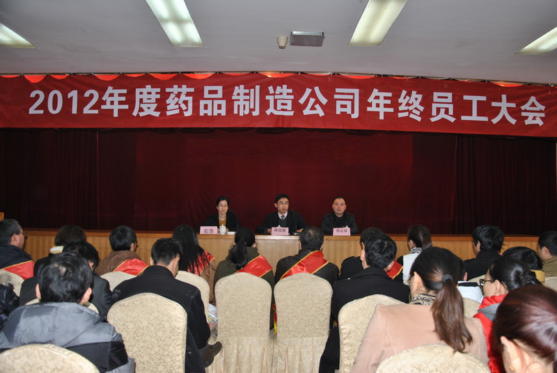 2013年1月26日下午,藥品制造公司全體員工在新昌賓館二樓召開(kāi)2012年度表彰大會(huì)。會(huì)議由綜合辦主任石萍主持。